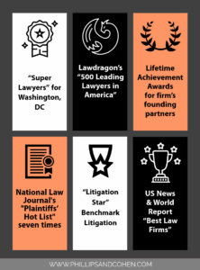 The whistleblower lawyers at Phillips & Cohen have been honored with numerous awards for their cutting-edge work and the outstanding results they have achieved for their whistleblower clients.